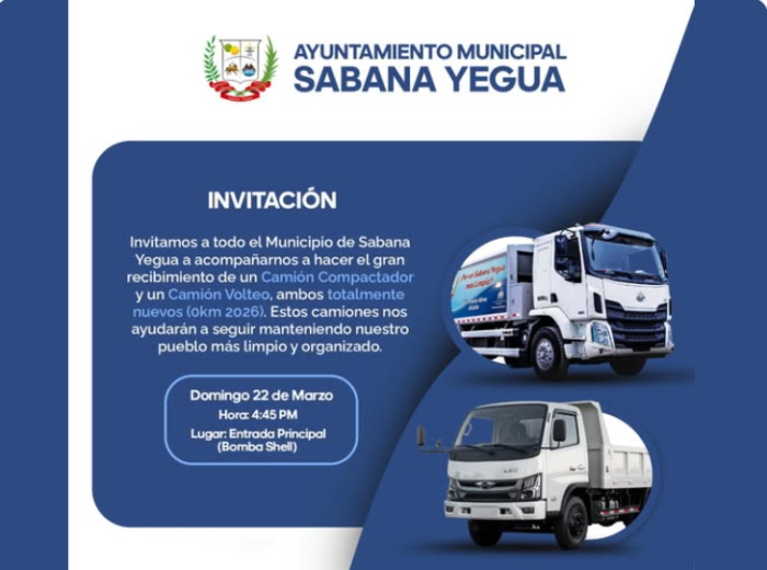 SABANA YEGUA. – Mañana domingo, te invitamos a ser parte de un momento histórico: recibiremos dos camiones nuevos (2026) que transformarán la recolección de basura en nuestro municipio.